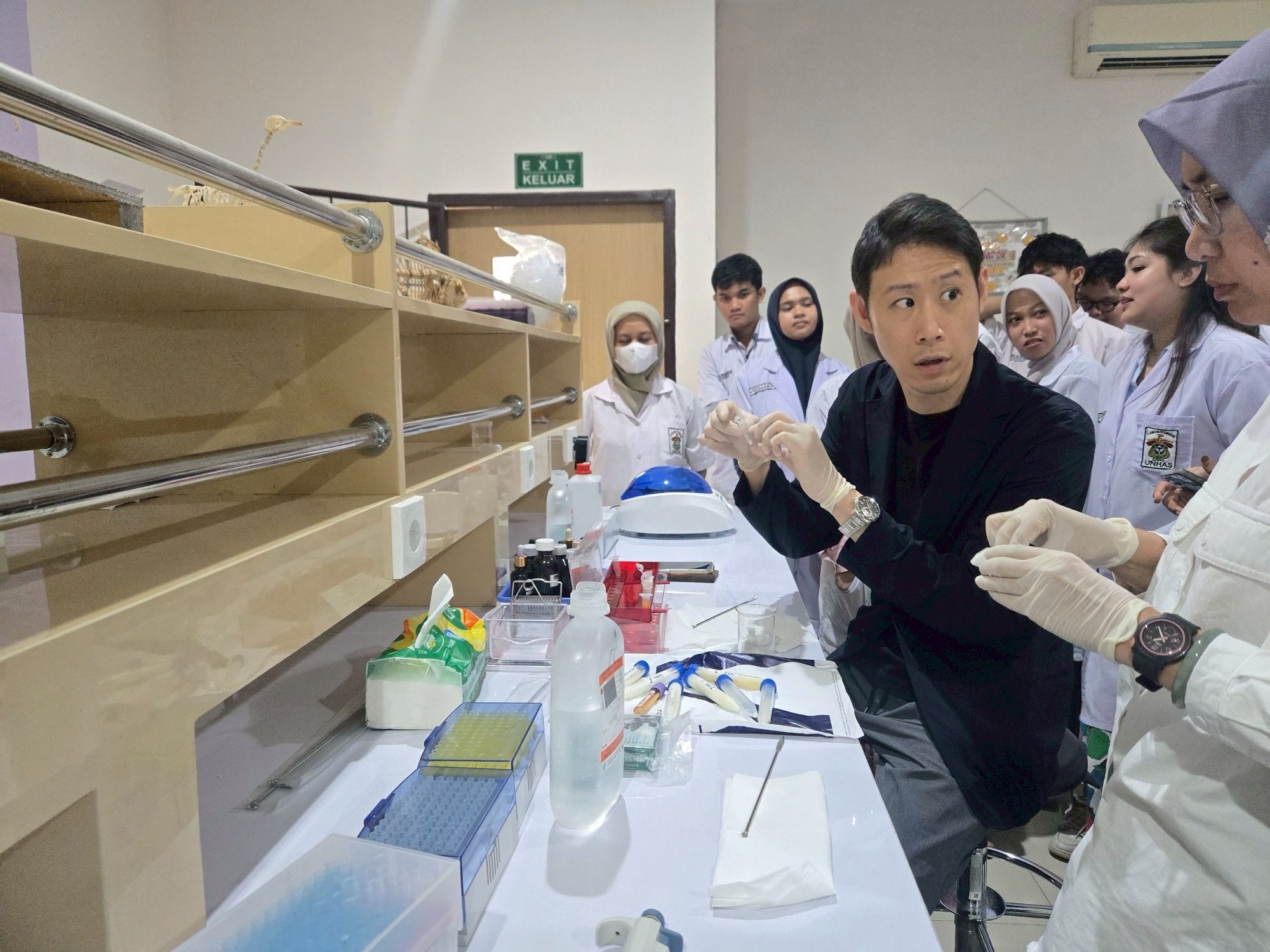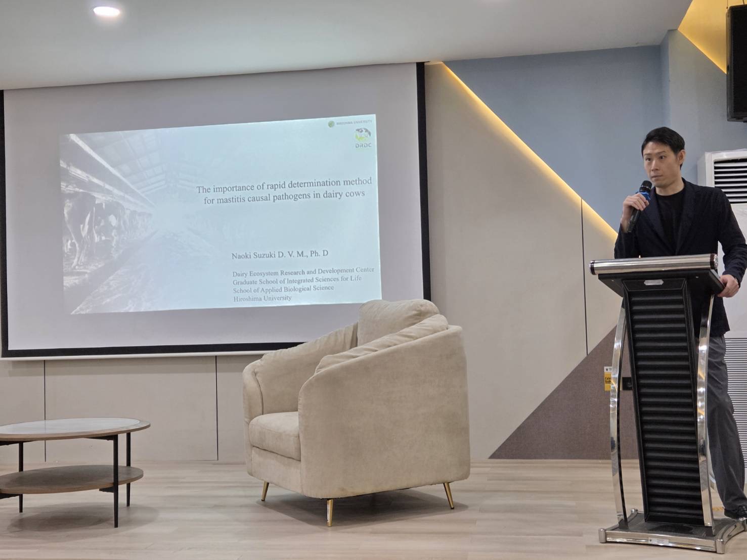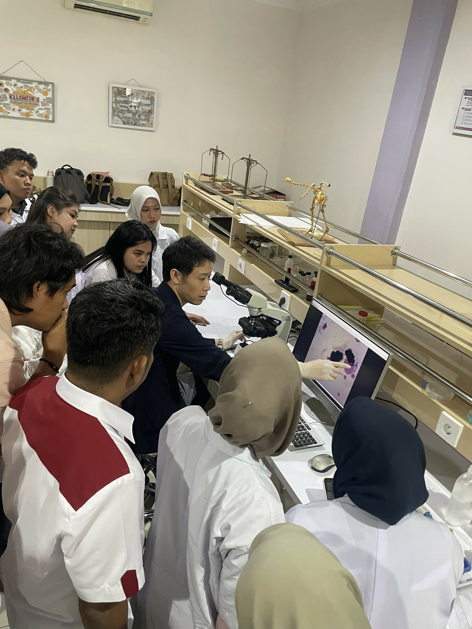 2025年11月10日、ハサヌディン大学(インドネシア・マカッサル)において乳房炎迅速診断技術の重要性と技術開発に関する講義を行い、グラム染色による迅速診断技術について実習を行いました。